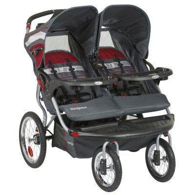 Info. : Shop for Jogging Strollers from JustStrollers.com! On-the-go moms get ready to roll with your little ones and the Baby Trend Navigator Double Jogger Stroller - Baltic. This versatile jogging stroller features swivel front wheels that lock in place when you're on the run and unlocks quickly for low-speed strolls. Durably constructed with a lightweight steel frame the Navigator stroller is loaded with bonus features including a handy parent tray with two cup holders an extra-large storage basket covered compartments and an MP3 speakers plug-in so you can well rock while you roll.The Navigator stroller is also fully adjustable with ratcheting shade canopies to keep baby high and dry and a five-point safety harness and tether strap. It folds down with a super-fast one-hand maneuver for compact storage and features pneumatic bicycle tires.The Baltic line of the Baby Trend Navigator Double Jogger Stroller is designed in neutral stain-resistant charcoal and red and the stroller is suitable for two infants up to 50 lbs each.About Baby TrendFor over two decades Baby Trend has been developing innovative solutions to meet the changing needs of modern parents. As one of the worldwide leading manufacturers of juvenile products the company's goal is to provide reliable products at an affordable price. From the Snap N Go stroller to the Diaper Champ Baby Trend's revolutionary designs are celebrated by busy parents everywhere. Based in Ontario California Baby Trend protects your children with car seats and other products that exceed federally regulated safety standards.